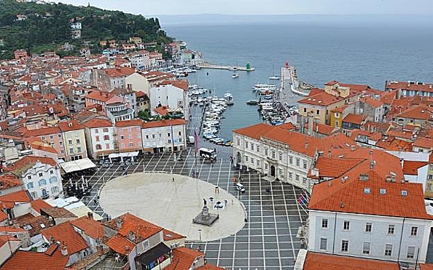 La ciudad de Piran, en Eslovenia, está considerada como una de las más bellas del Adriático, junto a su costa la vida transcurre tranquila para los vecinos que han sabido sacar el mayor partido posible a las circunstancias de vivir frente al mar. Los colores anaranjados de los tejados y la variedad de fachadas contrastan con el oscuro azul del Mediterráneo. Los atardeceres desde allí culminan una paleta de colores inigualable. Su pequeño puerto abraza las aguas saladas y abre paso al centro histórico de la localidad. Allí aparece la plaza Tartini, presidida por la estatua del violinista Giuseppe Tartini y escoltada por edificios de estilo veneciano, tónica habitual en las calles de Piran. Las callejuelas discurren estrechas y serpenteantes hasta topar con la Catedral de San Jorge y su excelso campanario, desde el cual es posible contemplar unas excelentes vistas panorámicas. Las murallas y la plaza Trg 1 Maja completan la visita.