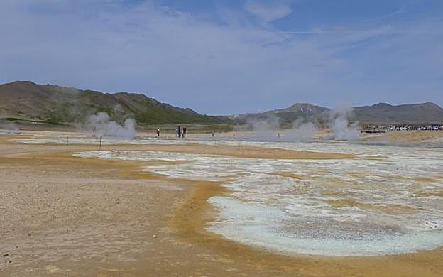 Ainhoa Múgica El lago Mývatn y su entorno presentan un paisaje lleno de extrañas formaciones de lava, humeantes fumarolas y cráteres volcánicos. Hvenir es un paisaje lunar de calderas de barro y humeantes fumarolas. El fuerte olor a azufre puede no resultar atractivo pero merece la pena pasear por este paisaje. El corazón del cráter Víti alberga un estanque de agua verde.
