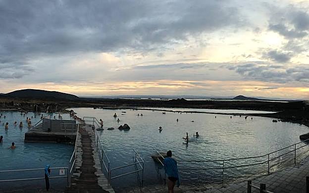 Ainhoa Múgica La Laguna Azul es la piscina termal al aire libre más famosa de Islandia, ubicada a 50 kilómetros de Reikiavick, recibe a diario miles de turistas. Pero no es la única opción para relajarse al aire libre. En el noreste del país, en el lago Myvatn, se puede disfrutar de la piscina termal de Jardbödin, menos famosa pero igual de buena que la famosa Laguna Azul.