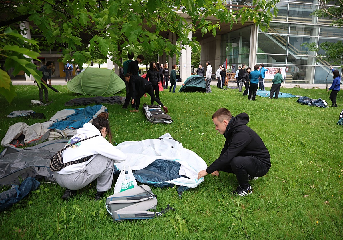 Convocados por Ikasle Abertzaleak, decenas de universitarios acampan en Ibaeta en solidaridadcon la iniciativa mundial #StudentsforGaza