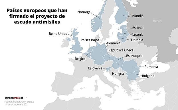 La realidad es que varios aspectos condicionan la presencia española en este escudo antimisiles, detallan las fuentes ministeriales consultadas. En primer lugar están las razones geográficas, al tratarse de un sistema orientado a prevenir cualquier ataque de misiles rusos en el flanco norte de Europa. Así, un total de 14 aliados además de Finlandia, país en proceso de adhesión, han sellado su compromiso para desarrollar esta iniciativa de manera conjunta con soluciones interoperables. En la lista se encuentran Alemania, República Checa, Eslovaquia, Hungría, Estonia, Letonia, Lituania, Noruega, Eslovenia, Rumanía, Países Bajos, Bélgica y Reino Unido.