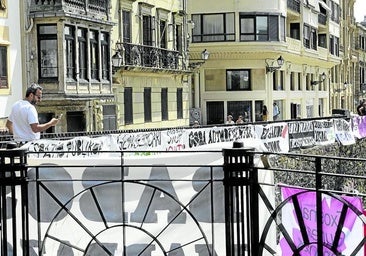 La pancarta en recuerdo de los 50 años de la muerte de 'Txiki' y Otaegi, los últimos fusilados del franquismo, que se ha podido ver ... en los últimos días en Zarautz y el papel que desarrolló ETA contra el dictador enfrenta al Gobierno Vasco y a EH Bildu. «Una cosa es reconocer a 'Txiki' y Otaegi su condición de víctimas del franquismo, indiscutible, y otra es el homenaje a quienes utilizaron la violencia, el miedo y el terror», aseguró ayer el director de Gogora, el Instituto de la Memoria, la Convivencia y los Derechos Humanos, el socialista Alberto Alonso, quien pidió de este modo que no se meta «en el mismo saco» a los miembros de ETA Jon Paredes Manot y Ángel Otaegi y a los miles de antifranquistas que trabajaron por la democracia.