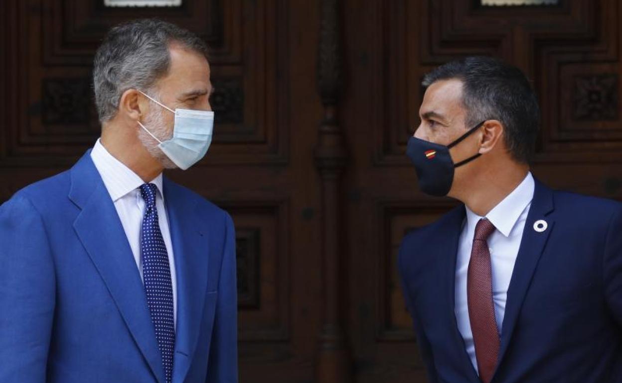 Don Felipe y Pedro Sánchez, este miércoles, en la escalinata de Marivent, donde tuvo lugar el tradicional despacho de trabajo de verano.