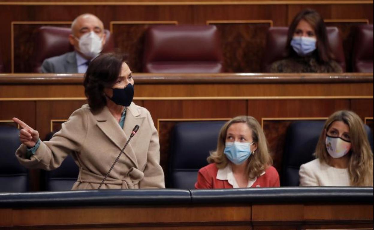La vicepresidenta Primera del Gobierno, Carmen Calvo, interviene en la sesión de control al Gobierno. Efe