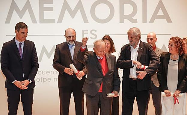 Los encargados de recibir los diplomas de reparación en nombre de las familias fueron los descendientes de los asesinados de manos del presidente del Gobierno, Pedro Sánchez, en una ceremonia -el primer reconocimiento oficial del Ejecutivo a las víctimas de la represión franquista- cargada de una fuerte emoción en la que no faltaron las lágrimas. No acudieron representantes del PP, sí las tres vicepresidentas y el ministro de Presidencia, Félix Bolaños. En nombre del PNV acudió su portavoz en el Congreso, Aitor Esteban.