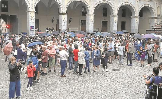 Bajo el lema 'Por unas fiestas seguras, populares y plurales', vecinos de Hernani se concentraron ayer en Gudarien plaza después del encierro de la víspera por parte de jóvenes del Movimiento Socialista para denunciar «la ocupación» del Ayuntamiento y «el acoso a la alcaldía». En una convocatoria a última hora de la tarde, los concentrados censuraron que lo ocurrido en el municipio «no es más que el último eslabón de la larga cadena de amenazas, acosos y agresiones llevadas a cabo durante últimos meses e incluso años contra miembros de diferentes movimientos populares de Hernani». Detallaron una «extensa lista» de acciones «injustificables» como «los sucesos del gaztetxe, las amenazas públicas de alterar las fiestas si no se respetan sus deseos; la campaña de acoso contra miembros de la comisión de txosnas y contra el Ayuntamiento».