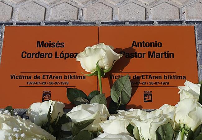 «Eran dos guardias civiles que trabajaban en San Sebastián y fueron asesinados por ETA en un tiroteo que alcanzó a una tercera víctima, que ... afortunadamente salvó su vida. Queremos decir a las familias de estos dos trabajadores que lo sentimos y que les recordaremos siempre porque perdieron la vida en nuestra ciudad de una manera muy injusta». Eneko Goia dirigió estas palabras de consuelo a los familiares de los guardia civiles Antonio Pastor y Moisés Cordero, justo en el lugar donde hace 45 años unos etarras acabaron son sus vidas, y donde el alcalde de San Sebastián les dedicó un sentido homenaje.