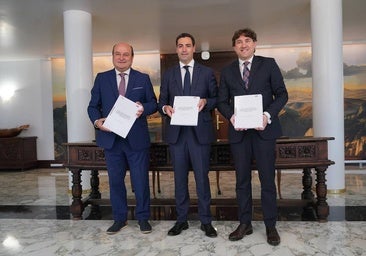 Ortuzar, Andueza y Pradales firman en el Parlamento Vasco el acuerdo para un Gobierno de coalición que arrancará oficialmente mañana con la investidura del nuevo lehendakari y del que «depende en gran medida el futuro de Euskadi»
