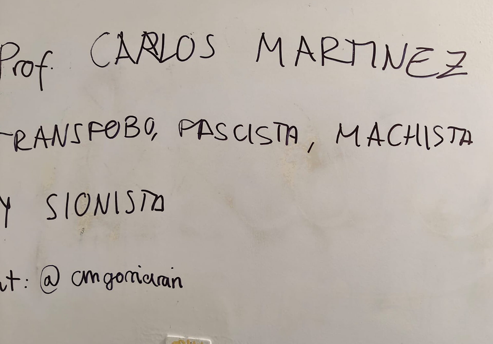 El profesor de la EHU, Carlos Martínez Gorriarán, ha denunciado en redes sociales pintadas contra su persona en una de las fachadas de la facultad en la que imparte clase en el campus de Ibaeta de San Sebastián. Como se aprecia en una de las imágenes adjuntas en su post en X, le acusan de «transfobo, machista, fascista y sionista». También aparece su nombre y unas flechas señalando una pancarta que se titula «irakasle faxista Ibaetan».