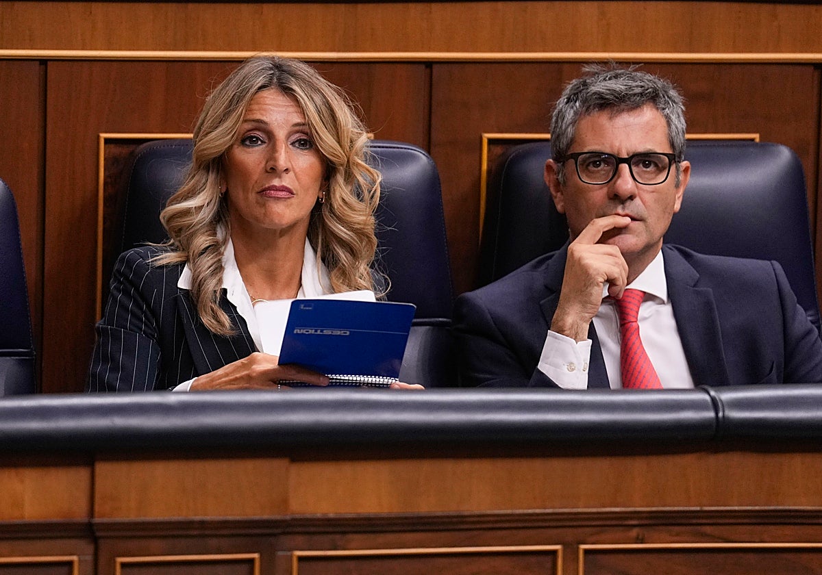 La vicepresidenta segunda, Yolanda Díaz, y el ministro de Justicia, Félix Bolaños, este martes en el pleno del Congreso Borja Sánchez-Trillo /EFE