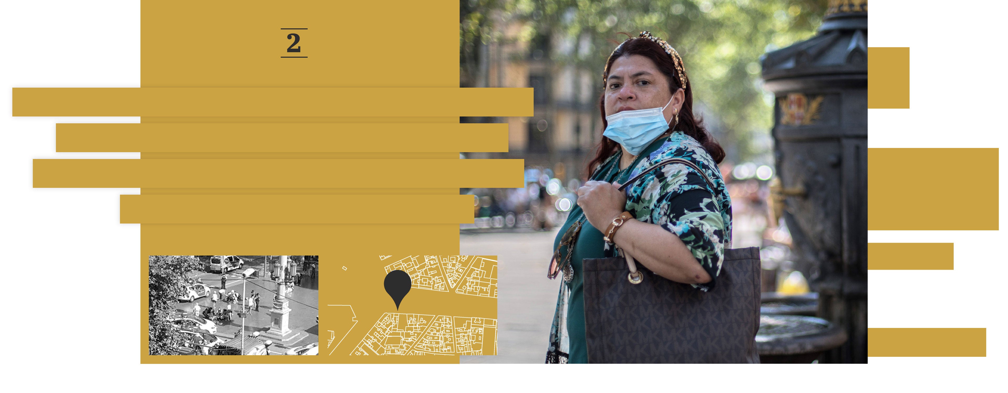 Quioscos convertidos en armas. No solo para Virginia. A Carlos Andrés Valencia, otros de los quioscos de las Ramblas, le destrozó el codo derecho. De hecho, este colombiano, todavía hoy, hay veces que se ve obligado a portar el cabestrillo. La furgoneta, solo unos metros antes de frenar, embistió un último quiosco y parte de la estructura cayó sobre Carlos, que instintivamente intentó salvarse de lo que se le venía encima. «Era mi día libre y había venido al centro, a Western Union, para hacerle la transferencia mensual a mis hijas. Escuché de pronto un ruido. Al principio pensé que era gente de juerga. Pero por esas cosas de Dios, me dio por voltear a mirar cuando vi que venía la furgoneta prácticamente encima. Solo me dio tiempo a echarme al lado del quiosco, pero toda la estructura se me cayó encima». Ese último golpe hizo frenar definitivamente la furgoneta a la altura del famoso mural de Miró. Allí acabaron los 550 metros de la matanza de Younes Abouyaaqoub. Aquí acaba hoy también el paseo de Javier, Edita, Virginia y Carlos Andrés. Los tres últimos contienen la respiración mientras observan a Javier, que tiene la mirada perdida en la acera en la que la furgoneta lanzó a su hijo instantes antes de frenarse por fin.