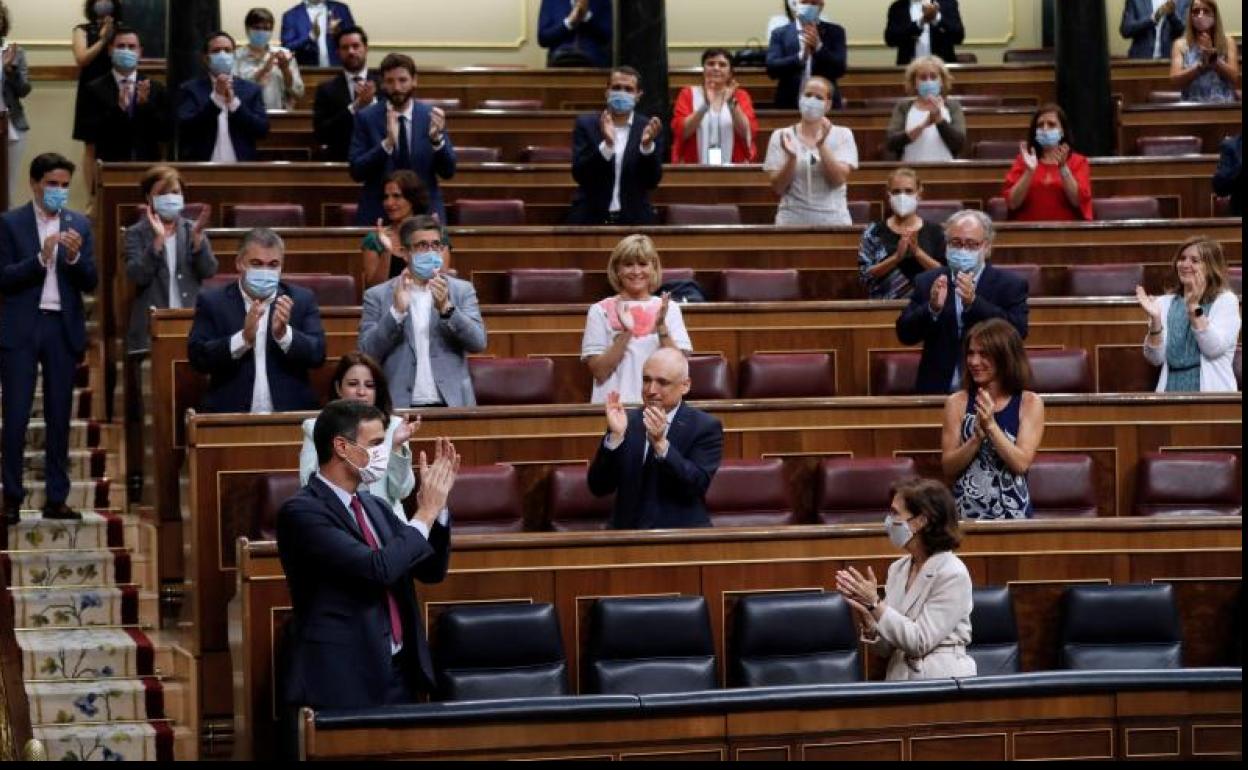 La última sesión de control al Gobierno en el Congreso antes de las vacaciones veraniegas fue una bronca sesión de aplausos y reproches. El duelo entre Sánchez y Casado se ha centrado en los acuerdos del Consejo Europeo sobre el fondo de reconstrucción, en el que el presidente del Gobierno se ha felicitado por lo logrado (140.000 millones de euros) tras «cinco extenuantes días» (lo repitió tres veces), y el líder de la oposición ha señalado que no era para tanto.