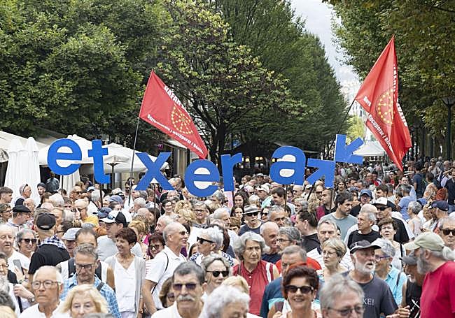 En el último día de la Aste Nagusia donostiarra, una manifestación con centenares de personas, convocada por Sare, ha defendido en las calles de San ... Sebastián que las pancartas a favor de los presos de ETA son «legítimas» y ha advertido de que «para dar el salto a escenarios de convivencia es imprescindible que todos los reclusos estén en casa». «Es evidente que este año se ha avanzado notablemente, pero todavía quedan pasos por dar», han remarcado desde la red ciudadana.