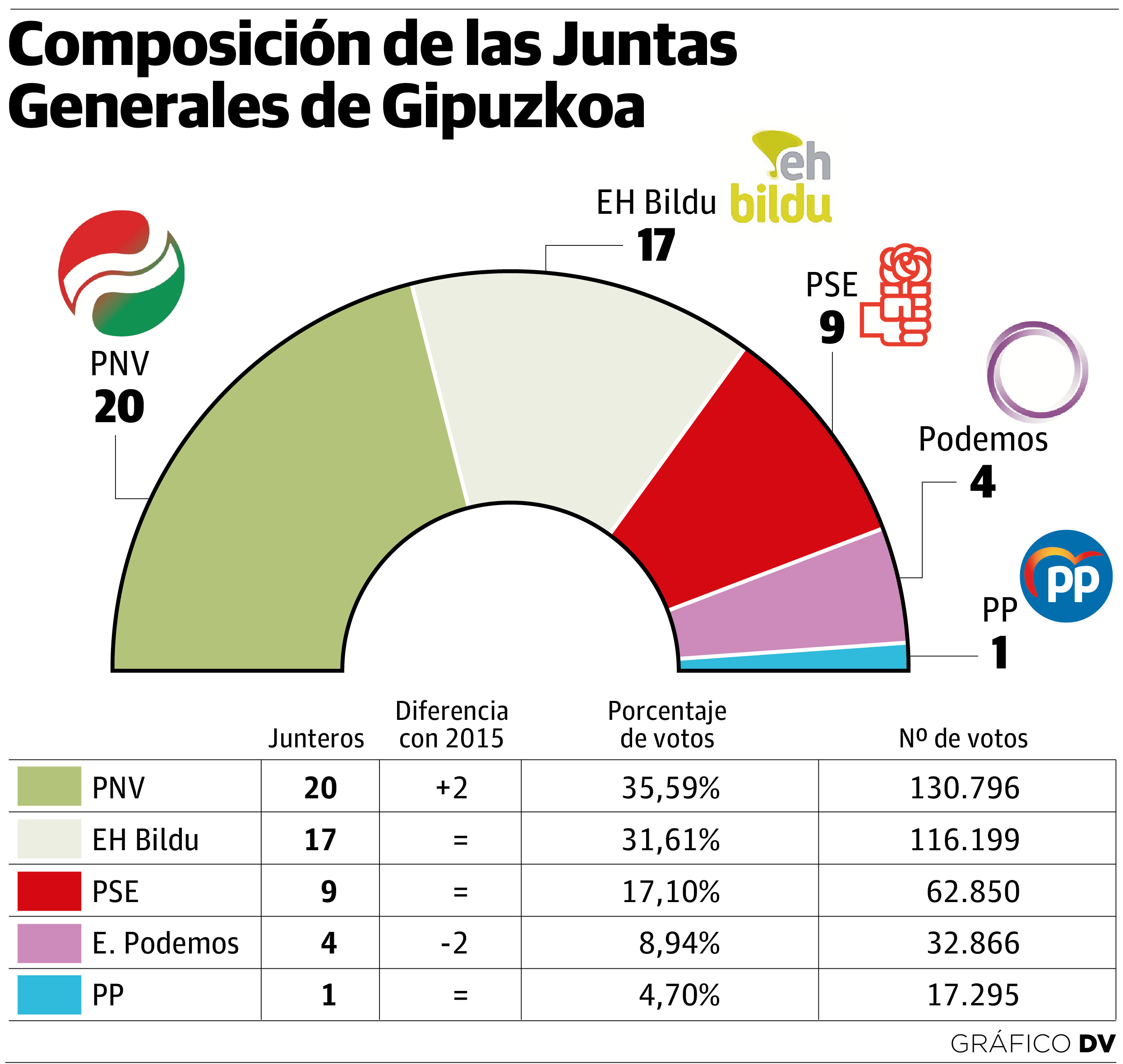 En los estados mayores de ambos partidos se asume que, ante esta situación de virtual empate, la diferencia la puede marcar el tirón del candidato. El PNV no ha lanzado ninguna señal, aunque es un partido hasta ahora previsible y que suele decantarse por personas con experiencia política y de gestión. Fuentes jeltzales indican que hasta septiembre este tema permanecerá aparcado al menos en lo que se refiere a la Diputación. Otra cosa son los ayuntamientos, donde ya se ha empezado a sondear a quienes ocupan cargos si tienen intención de repetir, al tiempo que se buscan caras nuevas. En Beasain, por ejemplo, ya se conoce que la candidata será Leire Artola, la actual alcaldesa.