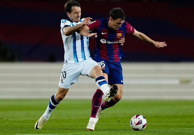 A partir de ahí, en la zona ancha formaron los mismos de la jornada pasada, con Turrientes, Merino y Brais mientras que arriba jugaron Oyarzabal de enganche y Becker más adelantado tratando de encontrar la espalda de la defensa azulgrana. En el Barcelona, como se esperaba, regresaron al once Iñigo Martínez, Pedri y Raphinha.