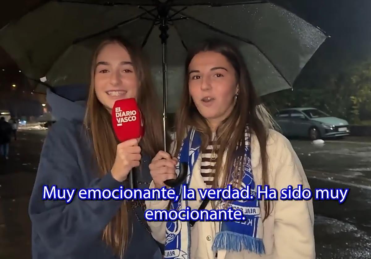 Los aficionados de la Real Sociedad valoran la victoria 'in extremis' en el derbi ante el Athletic disputado en Anoeta (3-2).