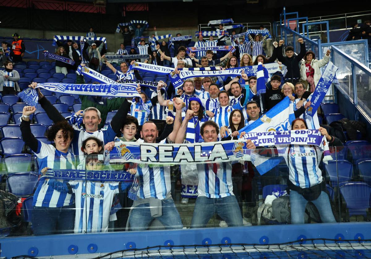 El sueño cobra realidad. Los 2.000 aficionados txuri-urdin que han viajado a París para la gran cita continental ya están en el Parque de los Príncipes. Unas horas antes del comienzo del choque, numerosos seguidores de la Real Sociedad han empezado a llegar a los aledaños del estadio de la capital francesa para animar a su equipo. El sonido txuri-urdin ya pone el ambiente en la ida de los octavos de final de la máxima competición continental.
