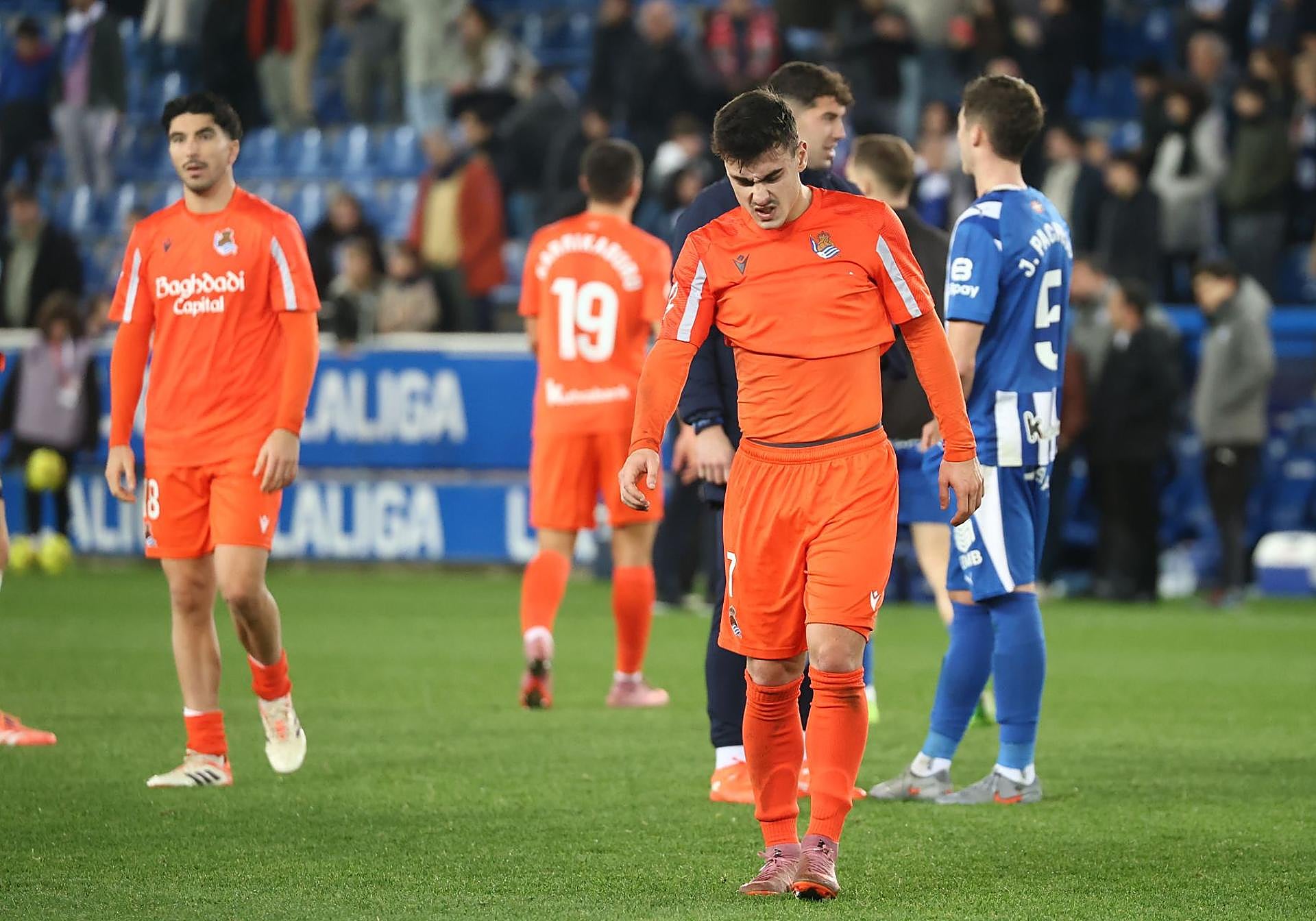 El primer tropiezo de la tarde lo protagonizó el primer equipo masculino, que decepcionó en su visita a Vitoria. Después de una primera parte plana, parecía que el duelo se iba con resultado gafas al descanso, pero en la última ocasión, unas manos de Aritz Elustondo en el área propia acabaron en penalti a favor del Alavés, el cual se convirtió en el 1-0 para los locales.