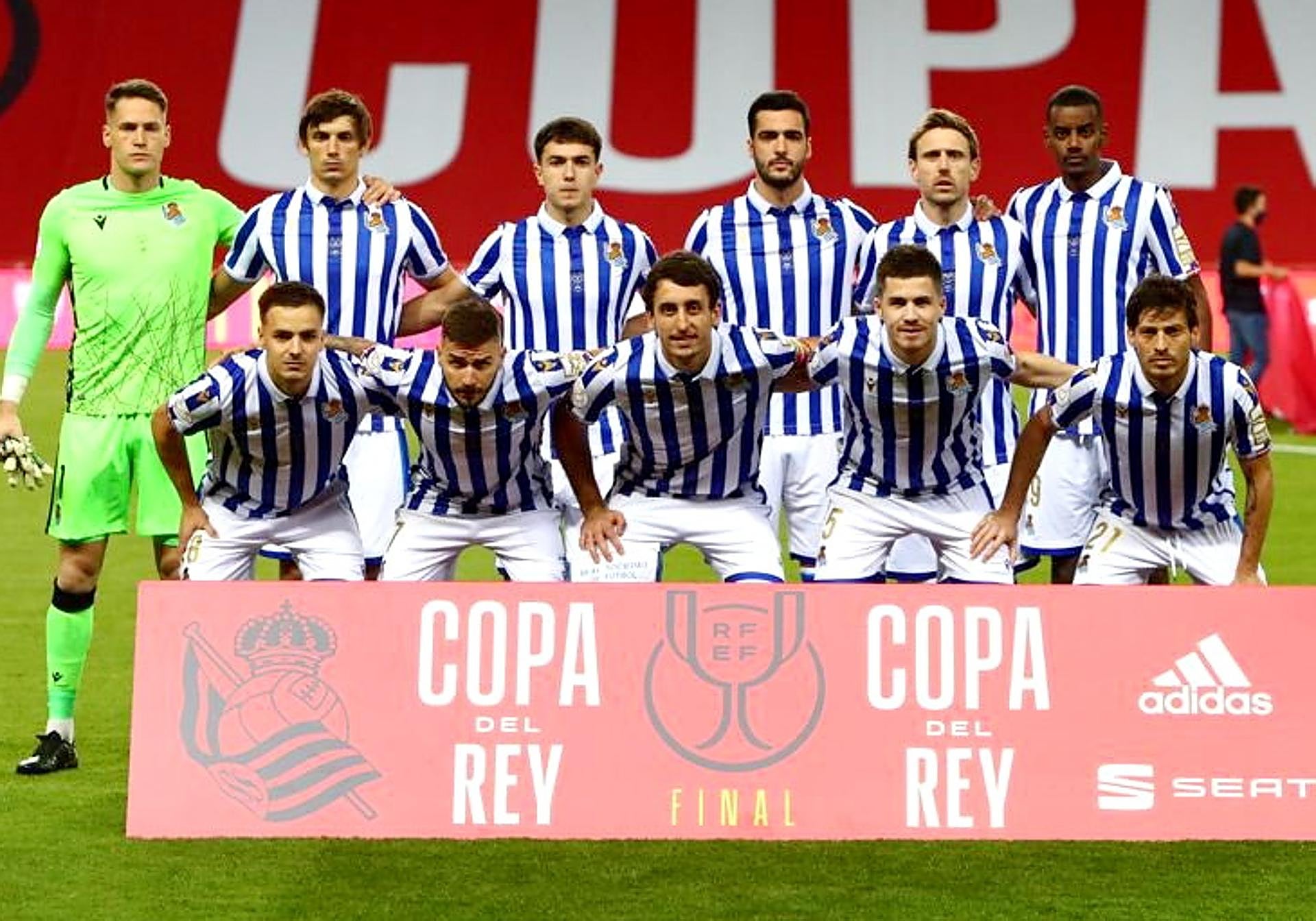 Los 15 jugadores de la plantilla de la Real Sociedad que ganaron la Copa del Rey frente al Athletic en La Cartuja el 3 de abril de 2021