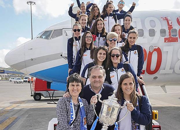 Caras de cansancio y muchas gafas de sol podían verse entre cada una de las jugadoras que se subían al chárter oficial del club como consecuencia de una prórroga nocturna que se alargó más de lo previsto. El cansancio no hizo mella en los ánimos de las jugadoras, que pese a tener un día repleto de reconocimientos tanto en la Diputación como en el Ayuntamiento, ninguna de ellas perdía la sonrisa e incluso se arrancaban con alguna que otra broma dedicada al mandamás blanquiazul. «¡Saca la pasta, Aperry saca la pasta!» soltó alguna que otra futbolista en alusión a la prima por llevarse el codiciado trofeo.