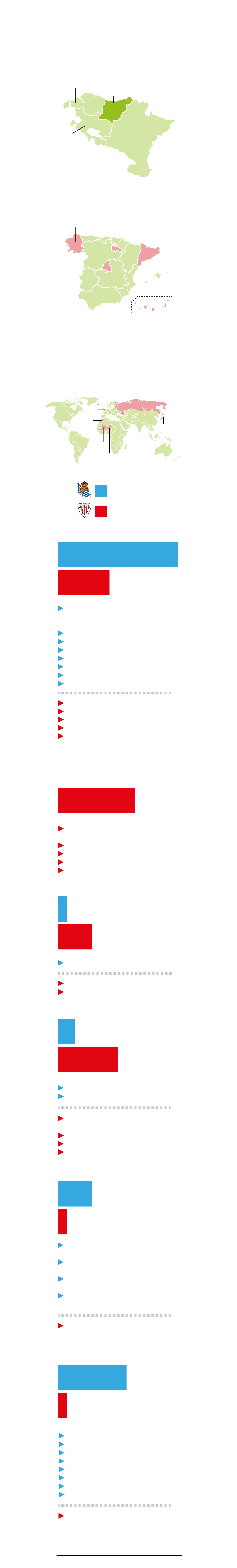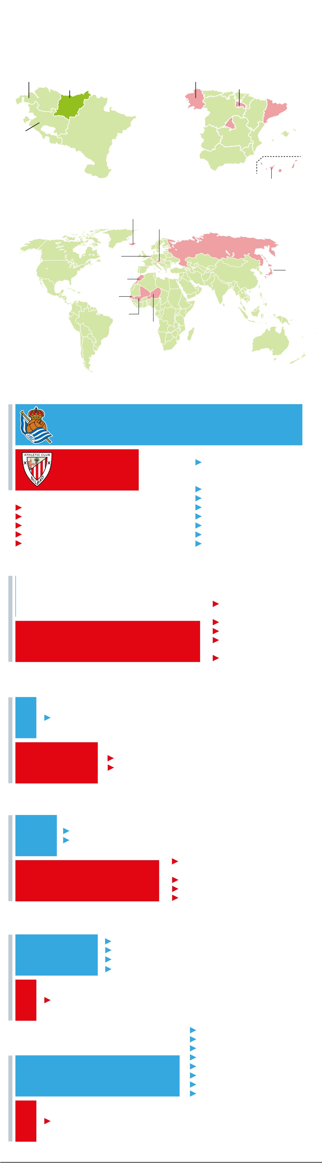 Sorprende que La Rioja solo aporte a Pablo Marín porque es un territorio en el que ambos clubes han reclutado bastante y desde la desaparición del Logroñés carece de un referente en el fútbol profesional. En el Athletic jugaron De la Fuente, el seleccionador, José Mari, Ezquerro, Aranzubia o David López, entre otros, y en la Real lo hicieron Zubillaga, Pardo y Hervías, por ejemplo.