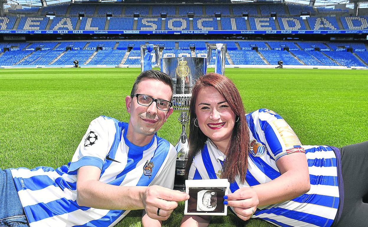 «Tuvimos que cancelar nuestra boda que estaba programada para el 3 de octubre del año pasado en la bodega Hiruzta de Hondarribia y en ese mes decidimos comenzar a practicar sexo sin protección para tratar de quedarme embarazada», señala Naiara mientras acaricia su incipiente barriga. «Llevábamos varios meses intentándolo y nada... y la victoria de la Real Sociedad, y encima frente al Athletic, nos trajo suerte. El club siempre ha estado muy presente en mi vida y esta es una bonita coincidencia», explica Diego sentado en su asiento de socio 12.787 ubicado en la tribuna superior de la grada Aitor Zabaleta a la que ha tenido la oportunidad de volver más de un año después para realizar la sesión de fotos que acompaña a este reportaje. La familia txuri-urdin tendrá un nuevo miembro a mediados de diciembre, pero seguro que con la pasión con la que los guipuzcoanos jalean a su equipo este alumbramiento no será el único fruto de aquella noche histórica.