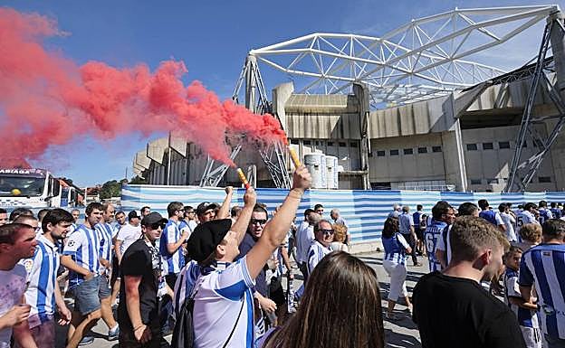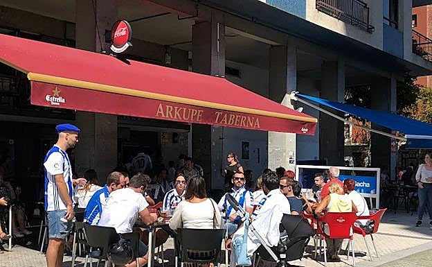 14:00 h. La afición txuri-urdin coge fuerzas en los bares cercanos al estadio de Anoeta, cada vez más concurridos. La Avenida de Madrid es ya un tránsito continuo de aficionados que se acercan al estadio. Los comentarios sobre cómo se ve desde ese punto centran las conversaciones.