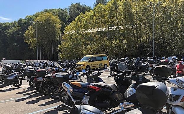 14:30 h. A dos horas que comience el encuentro el parking de motos ya tiene completa la mitad de su capacidad.