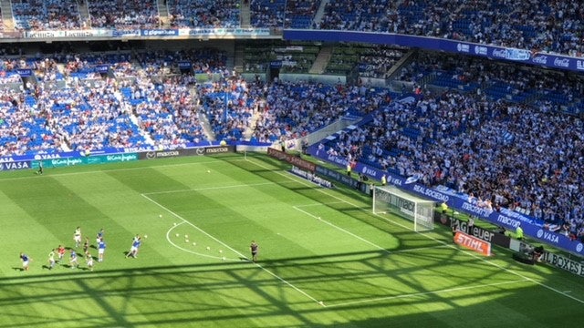 16:08 h. Al descanso, muchos aficionados salen a los pasillos y a los bares bajo las gradas. Los elogios a la remodelación de Anoeta son unánimes. Muchos comentarios sobre cómo se ve desde las nuevas localidades.