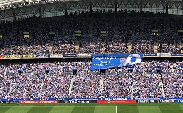 15:40 h. La grada Aitor Zabaleta comienza a corear cánticos. El primero en recuerdo al asesinado aficionado a la Real que da nombre a la tribuna sur. La nueva acústica, espectacular: