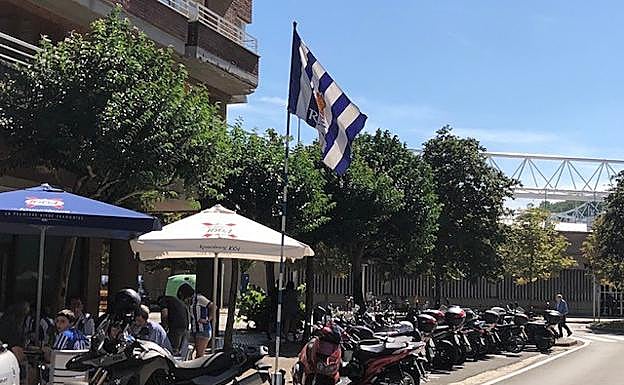 14:08 h. Muchos establecimientos hosteleros han decorado su exterior con banderas de la Real.