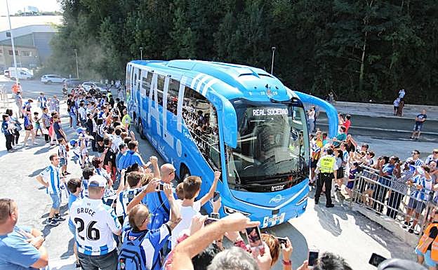 14:47 h. El autobús de la Real también está ya dentro del estadio. Ha entrado directamente y los aficionados no han podido ver directamente a los jugadores, tal y como ocurría antes de la reforma. Los jugadores ya están en el vestuario: