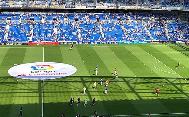 16:28 h. Entre los aficionados se comenta cuánto ha mejorado la acústica de la megafonía. Y eso que en el campo hay una megafonía provisional hasta que se instale la definitiva en enero 2019. Los cánticos también se escuchan de forma mucho más intensa.
