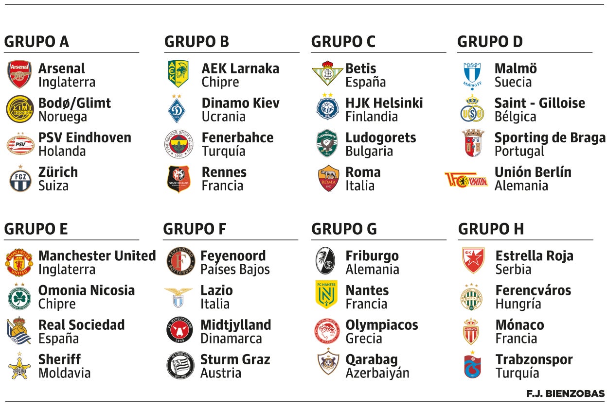 La Real se empareja en el grupo E con el United, Sheriff Tiraspol y Omonia Nicosia con el objetivo de luchar por el primer puesto con los ingleses