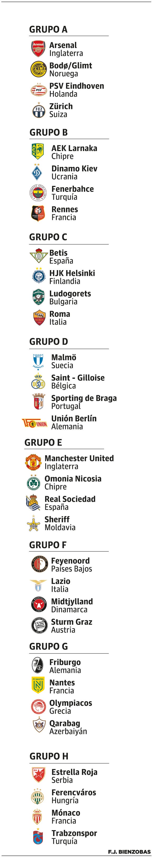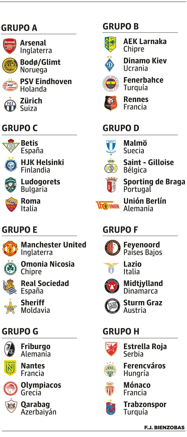 Sale la Real Sociedad, que va al grupo E con el Manchester United.