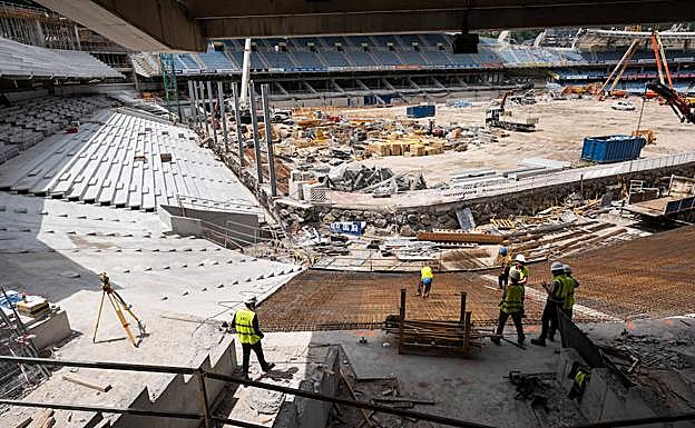 Una cosa es ver el proyecto de reforma de Anoeta sobre plano o en una recreacion 3D y otra muy distinta pisar sobre terreno, sobre los nuevos graderíos y espacios interiores, como ha hecho este periódico. La principal conclusión es que el nuevo Anoeta no tendrá nada que ver al que despedimos en mayo. Es un campo nuevo. Olviden lo anterior. De lo que conocemos a lo que será, quedará el nombre y las dos tribunas laterales altas, que también recibirán su particular lavado de cara. El resto, cambia tanto que el aficionado va a tener la sensación de que el Anoeta que hemos conocido, ha sido un mal sueño. El fútbol es otra cosa. El aficionado está practicamente encima del césped. Esa percepción va a ser todavía mayor cuando se terminen de colocar las cuatro cerchas y las cubiertas de las gradas se prolonguen hasta cubrir a todos los espectadores. De un estadio abierto, en el que el sonido escapaba por todas las esquinas, se pasa a un campo cerrado, con estructura rectangular, en el que el sonido reverberará aumentando los decibelios como nunca antes. Gipuzkoa va a tener un nuevo campo de fútbol en el tiempo que se cambia una cocina en un domicilio. Y eso es por el ejército de operarios que trabajan a tres turnos las 24 horas y por el esfuerzo y el compromiso de las empresas implicadas en la operación. A cada paso por Anoeta irrumpe un trabajador. Entre ladrillos, maderas, clavos y estructuras metálicas y de hormigón comprobamos que en apenas noventa días, los que van desde el último partido a la cuarta jornada de la próxima Liga, el realista se va a encontrar con un espacio irreconocible.