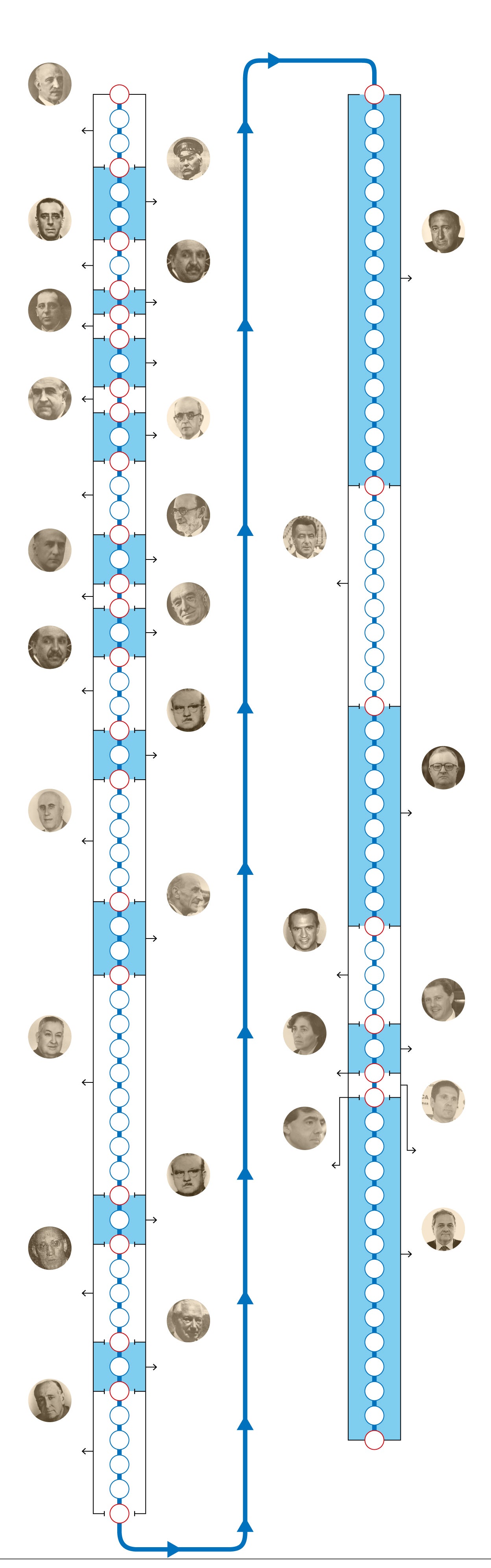 Comparar aquella época y las inmediatamente posteriores con la presente no es un ejercicio sencillo de realizar. El contexto del fútbol –televisión, marketing, ticketing– ha cambiado tanto que resulta complicado encontrar equivalencias. Aun así, existen ciertos paralelismos en las decisiones que tomaron los dirigentes de la Real en el siglo pasado, sobre todo entre aquellos que encadenaron más tiempo en la presidencia, con las líneas que ha seguido Aperribay en la actualidad. La apuesta por la cantera, las instalaciones de Zubieta, la masa social y el campo del primer equipo son algunas de las cuestiones claveque componen la exitosa fórmula de gestión del actual mandatario blanquiazul, y que recuerdan inevitablemente al libro de estilo de otros dirigentes como el del propio Orbegozo, Iñaki Alkiza, Luis Uranga o José Luis Astiazarán. Cuatro presidentes que abarcan 38 años de historia de la Real.