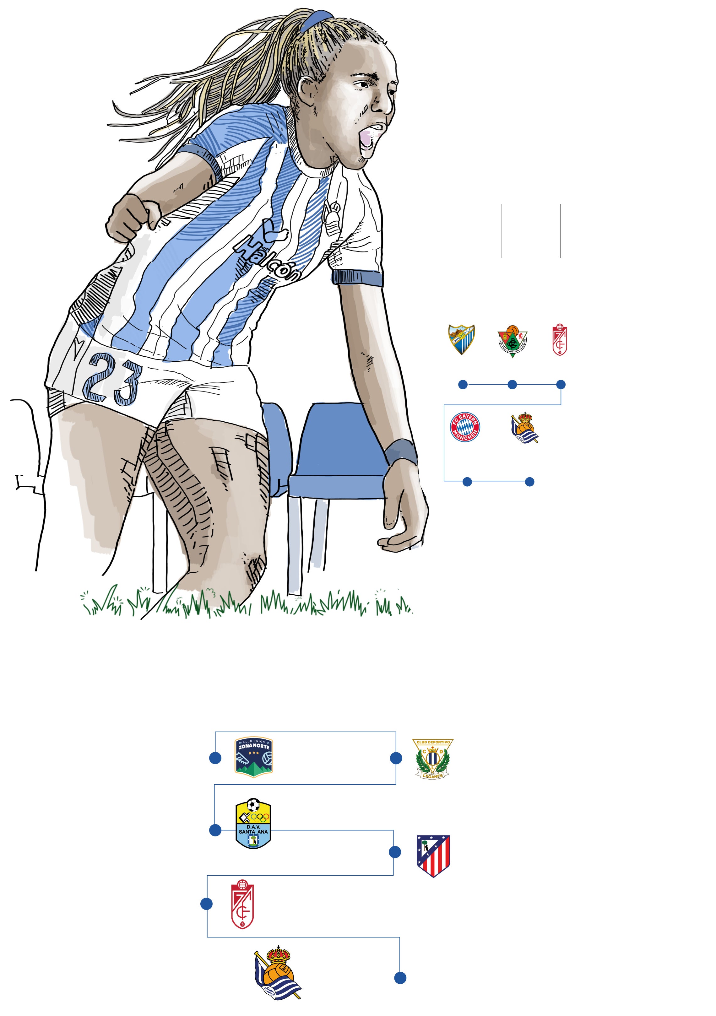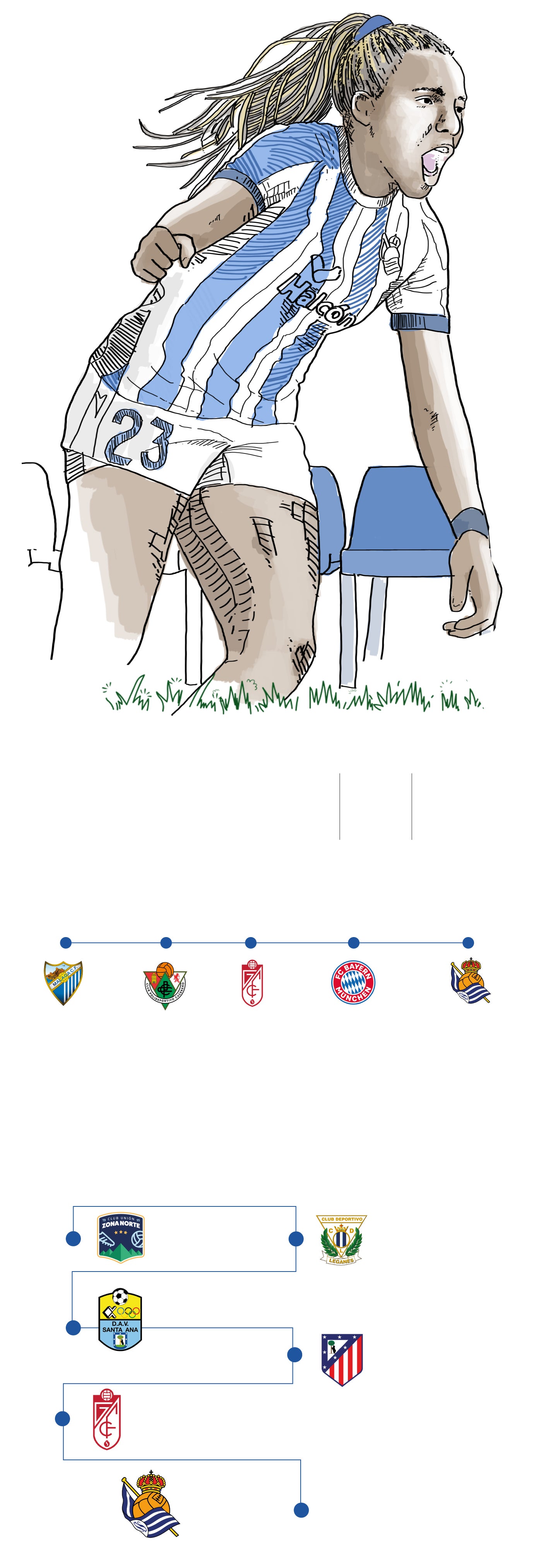 «Uno de mis sueños es superar con la Real los 16 goles que hice la pasada con el Granada», comentó la delantera en estas mismas páginas hace ocho días. Lleva ya siete dianas, con dos dobletes, ante el Eibar y su exequipo, y el de penalti el domingo pasado ante el Barcelona. Una jugadora que por sus características es capaz de cambiar la tendencia de un equipo.Potentísima, rápida y con olfato especial para el gol. «Claro que me gustaría jugar la Champions», dice con una sonrisa.Queda camino por recorrer, pero la Real ahora mismo, está en esos puestos.
