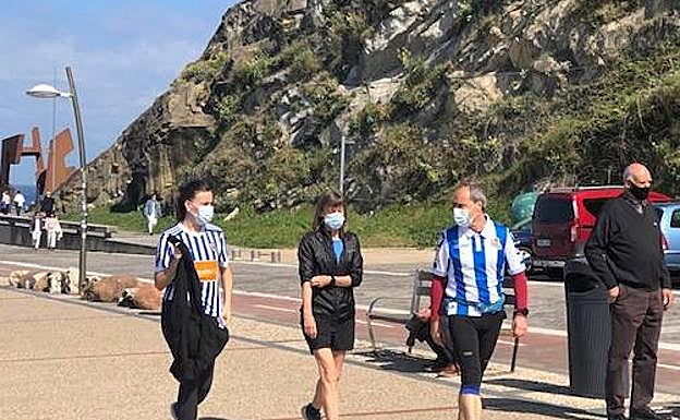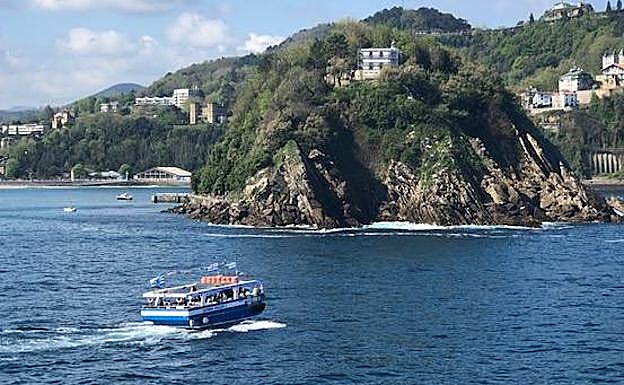 12.18 h. Miles de donostiarras aprovechan el buen tiempo para pasear y presumir de camisetas. Hasta el barco que va a la isla está decorado con las banderas de la Real.