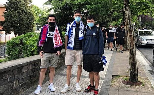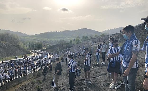 10.42: La gran mayoría de seguidores txuri-urdin han querido despedirse de los jugadores en primera línea, aunque muchos han optado por situarse en la ladera un poco más alejados y manteniendo la distancia de seguridad.