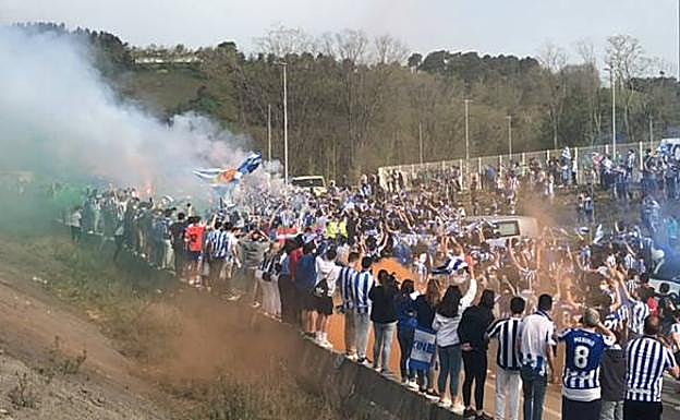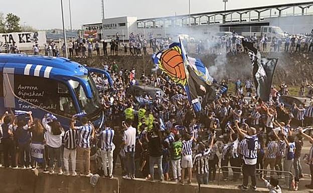 11.00: La afición txuri-urdin se ha volcado con el equipo por toda Gipuzkoa y numerosos seguidores también se están acercando al aeropuerto de Hondarribia para despedir a los realistas. La Ertzaintza también ha establecido diversos controles en las inmediaciones del aeródromo guipuzcoano.