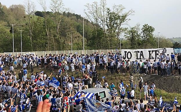 10.20: Los seguidores txuri-urdin no han dudado en acercarse a Zubieta para mostrar todo su apoyo a los jugadores ante una cita histórica como la de mañana.