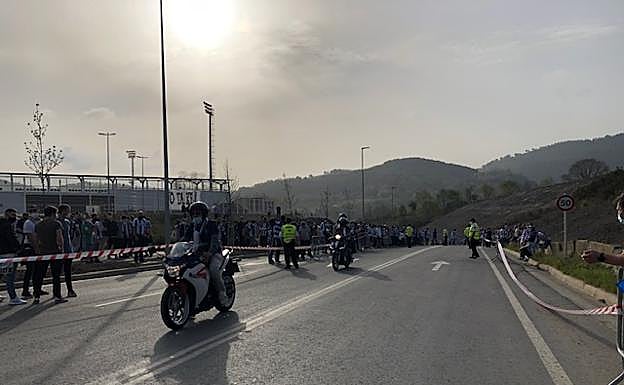 09.48: Tanto la Ertzaintza como el sevicio de seguridad del club han establecido un fuerte control para permitir una entrada de aficionados ordenada.