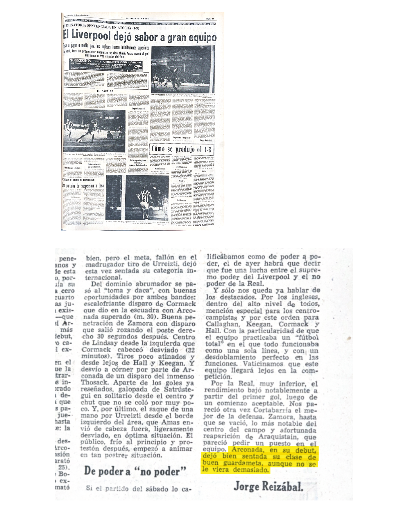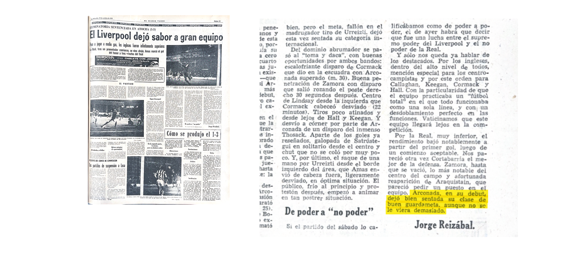 Medio siglo de la primera parada de ArconadaEste miércoles se cumplen 50 años del debut de Arconada con la Real Sociedad. Fue en un partido de la Copa de la UEFA ante el Liverpool en Atocha. Luego llegaron 550 partidos más e infinidad de intervenciones para el recuerdo