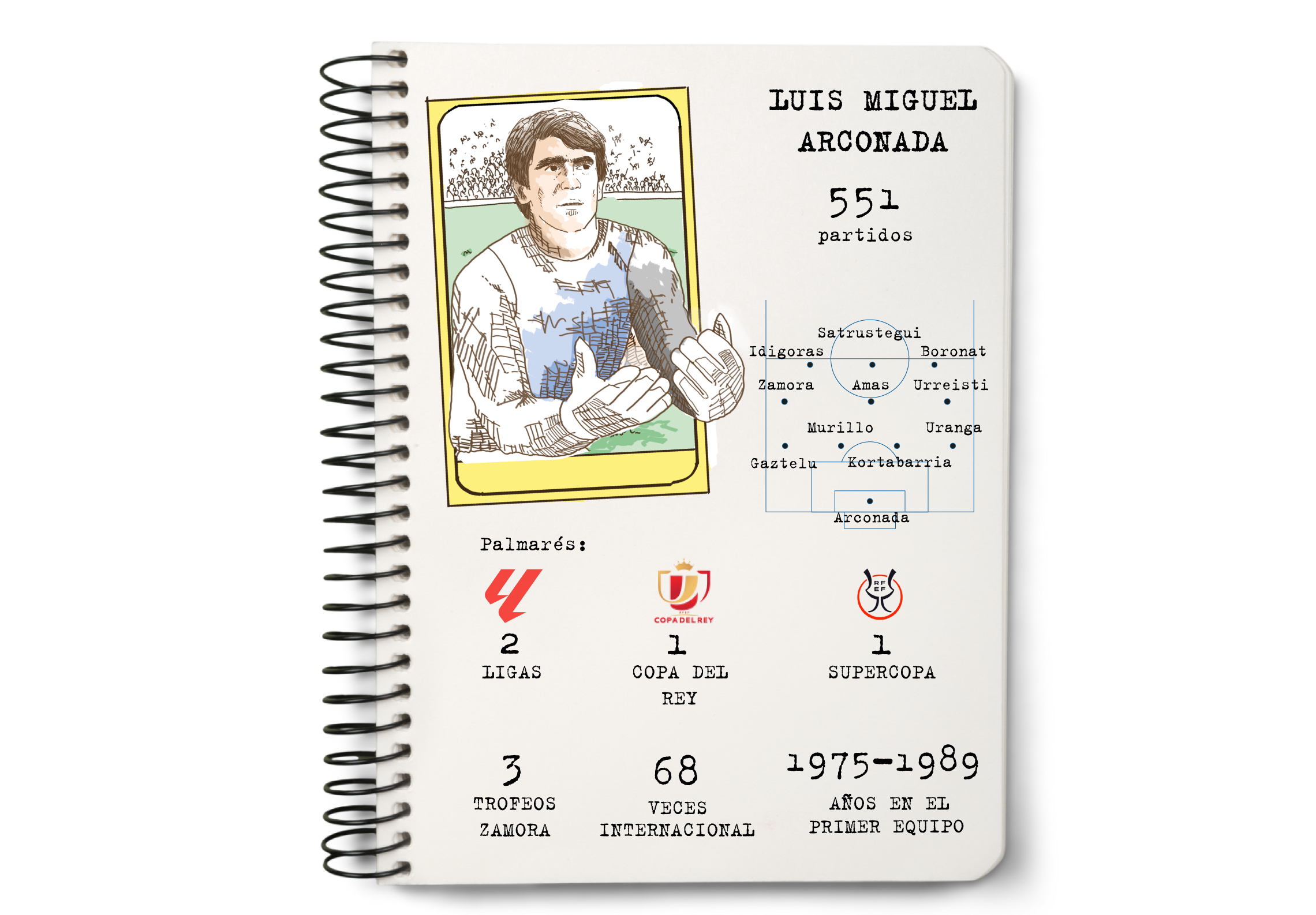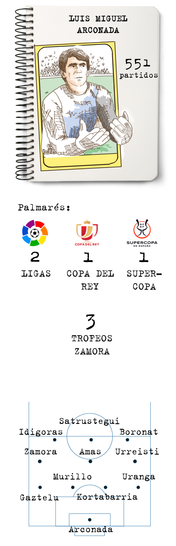 Arconada alcanzó los 551 partidos oficiales en la Real, pero bien podrían haber sido medio centenar más si no se llega a romper la rodilla en la primera jornada de la temporada 1985/86 el día del debut de Toshack. Poseía reflejos felinos bajo los palos. Dejó paradas memorables con sus 180 centímetros de altura, una talla en extinción en el fútbol actual entre los arqueros.