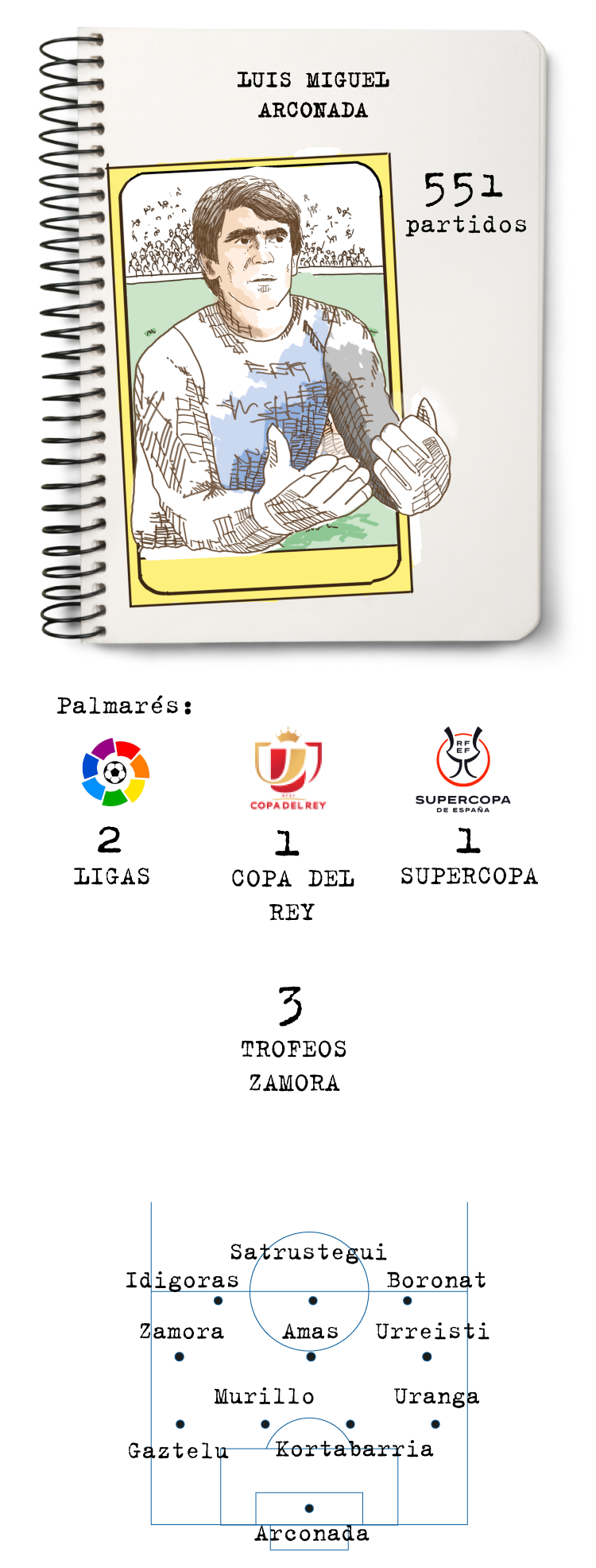 Con Arconada defendiendo la portería la Real conquistó dos Ligas, una Copa del Rey y una Supercopa y alcanzó las semifinales de la Copa de Europa. Lideró el mejor vestuario de la historia del club. Los niños de los ochenta no querían ser porteros, querían ser Arconada. La Real, un equipo que apenas había ganado un trofeo en los albores de su existencia, empezó a ganar adeptos más allá de su territorio en gran medida gracias a él.