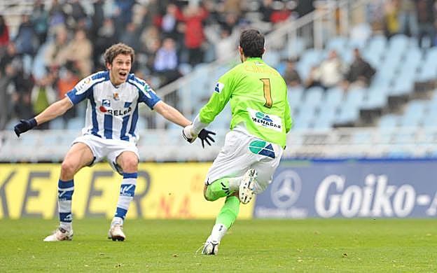 (Real Sociedad-Nástic de Tarragona). Medio estadio se echó las manos a la cabeza cuando el guardameta chileno marcó un gol de falta con un potente disparo por bajo.