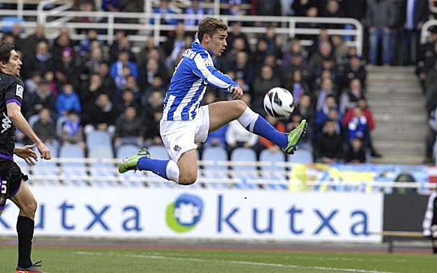 (Real Sociedad-Real Valladolid) Un pase en largo de Zurutuza desde campo propio lo controló el francés y, sin que botara, terminó la jugada con su pie izquierdo.