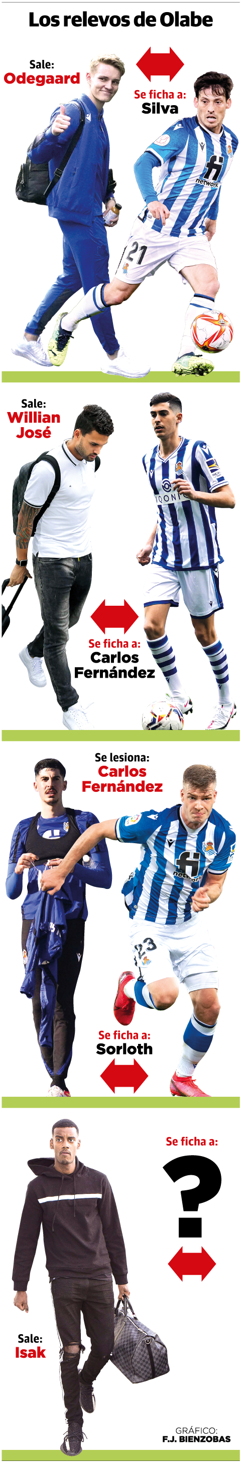 En los cuatro años que lleva Olabe como director de fútbol ha vivido tres experiencias similares a la actual, y en todas ellas ha salido airoso del trance, lo que invita a pensar que ahora también se guarda un as en la manga para cubrir el hueco de Isak.