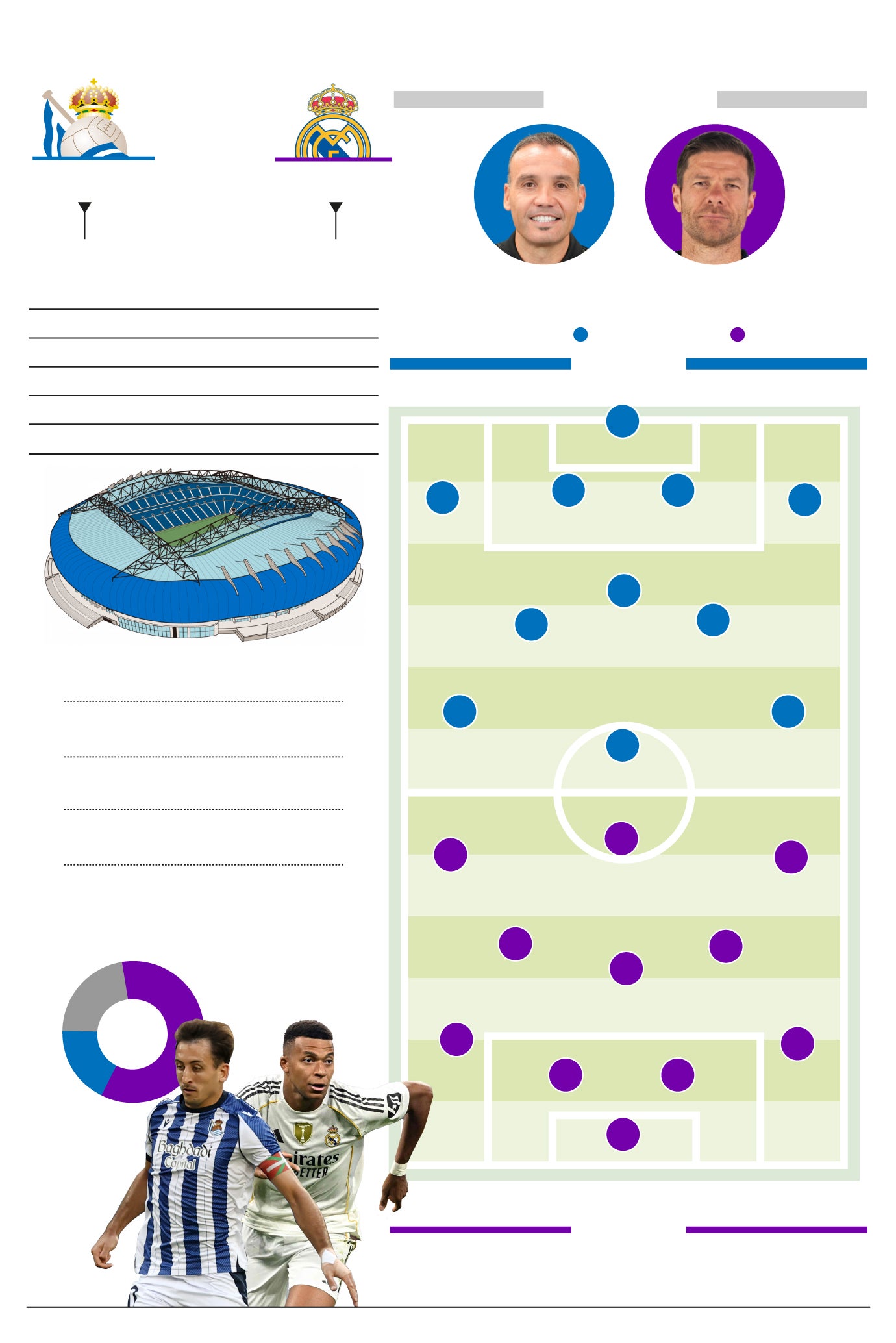 Sergio y Xabi se estrecharán la mano y se fundirán en un abrazo a las 16.15 horas, pero una vez eche el balón a rodar no hay amigos. La Real debe saltar al tapete de Anoeta como siempre cuando te visita el Madrid, a tumba abierta los primeros minutos para marcar territorio. Cuando los números, y sobre todo las sensaciones no son las mejores, cualquier aspecto del juego es clave como para levantar el ánimo. Celebrar un saque de banda, un robo a Vinicius, una segada a Mbappé, que Oyarzabal despeje un córner en el primer palo... La Real se tiene que agarrar a todo para sumar la primera victoria de la temporada. Todo es todo.